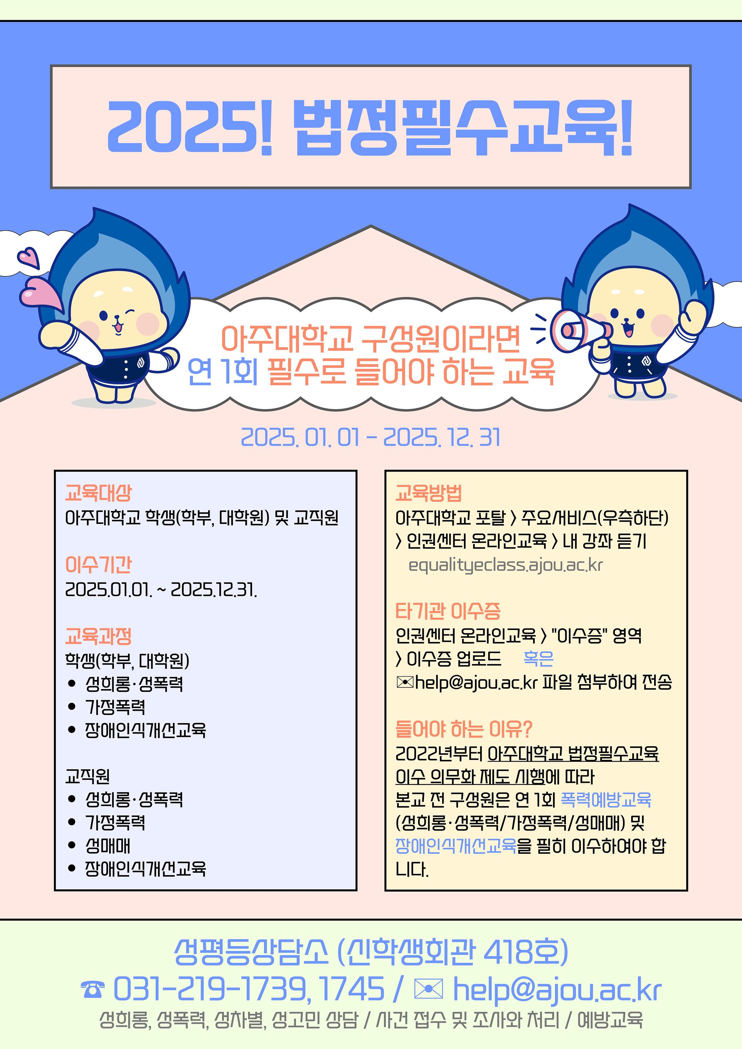 2025-2학기 인권센터 법정필수교육 이수 안내
